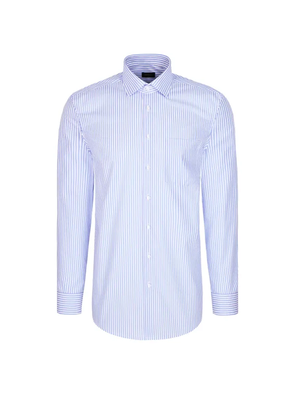 Design: 2-knoops manchetten, Knop placket, Ronde zoom, Borstzak, Knop sluiting; Type sluiting: Knoopsluiting; Materiaal: Katoen; Motief: Gestreept; Kraag: Kentkraag; Extra's: All-over patroon, Label patch/label flag; Pasvorm: Regular fit; Armlengte: Lange mouw
