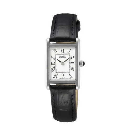 Dit dameshorloge van Seiko heeft een polsband van leer. Het model is voorzien van een wijzerplaat met hardlex en een gespsluiting. Het horloge beschikt over een Quartz uurwerk.Het horloge is waterbestendig tot 3 ATM. Dit wil zeggen dat het bestand is tegen een klein beetje (spat)water, zoals bij handen wassen.