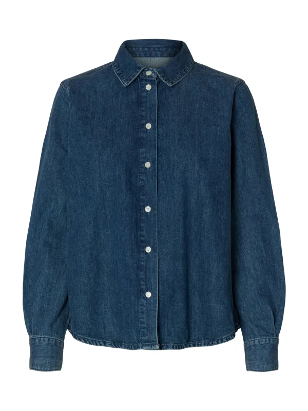 SELECTED Blouse ‘SLFBEA NOA’ blauw denim