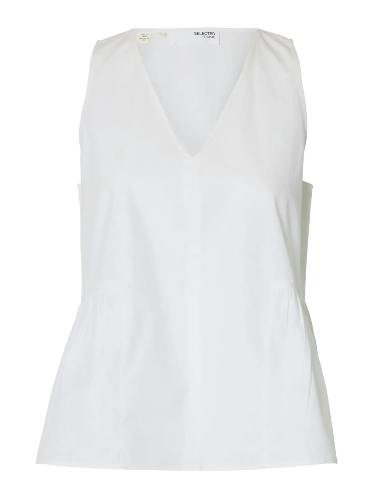 Blouse type: Blouseshirt; Design: Flare, Diepe snit/decolleté; Materiaal: Katoen; Motief: Effen; Kraag: Zonder kraag; Details: Gedrapeerd; Extra's: Voelt zacht aan, Huidvriendelijk materiaal; Pasvorm: Normale pasvorm; Armlengte: Mouwloos; Lengte: Normale lengte
