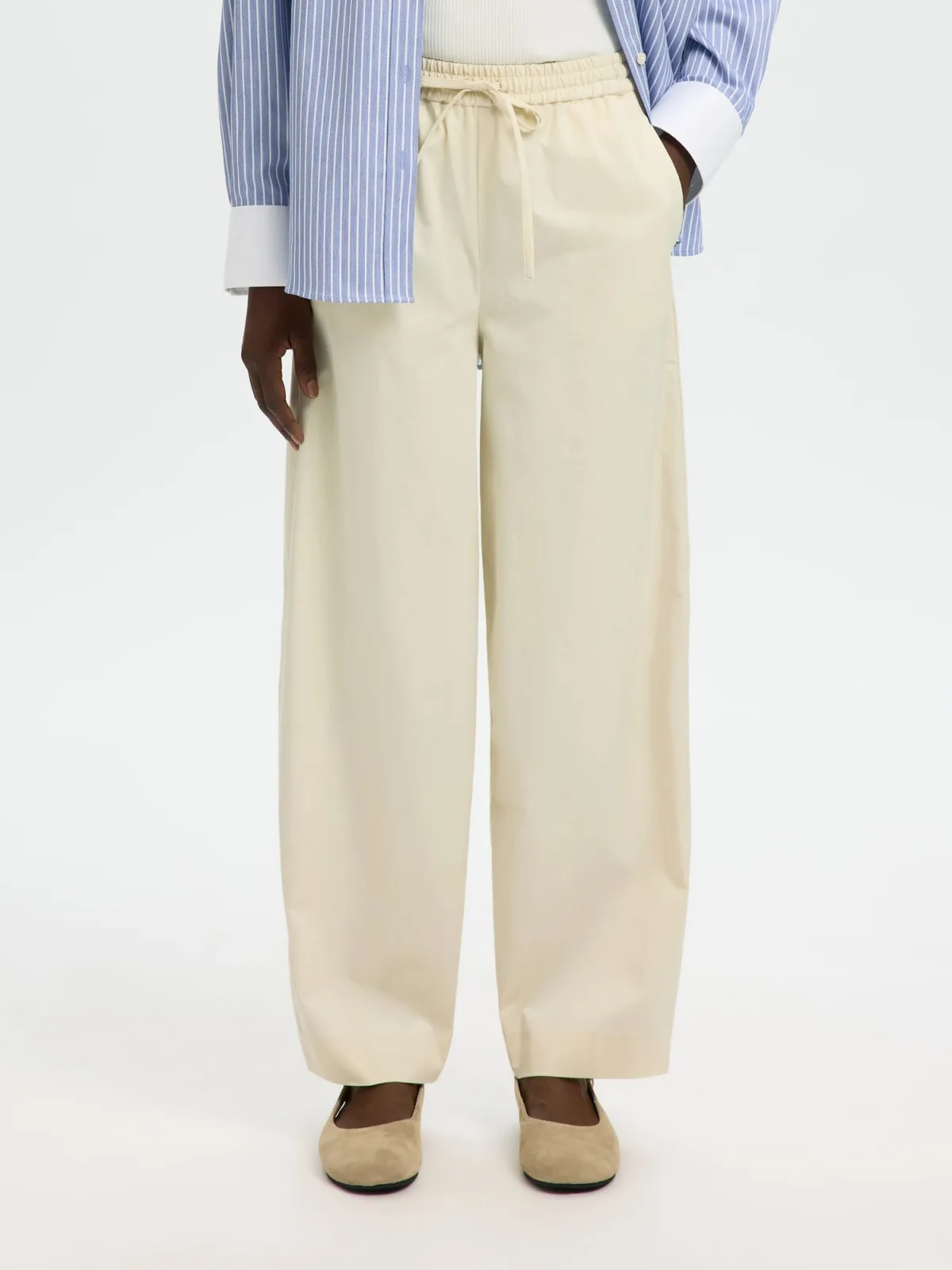 Selected Femme Broek 16099971 L BARREL in de kleur Licht beige