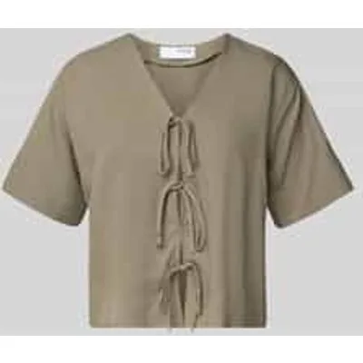 Blouseshirt van SELECTED FEMME;Mix van lyocell en linnen;Los model;Model 'NATUK';Vetersluiting;V-hals;Design met korte mouwen;Ruglengte bij maat 36: 55 cm;Mouwlengte bij maat 36: 23 cm