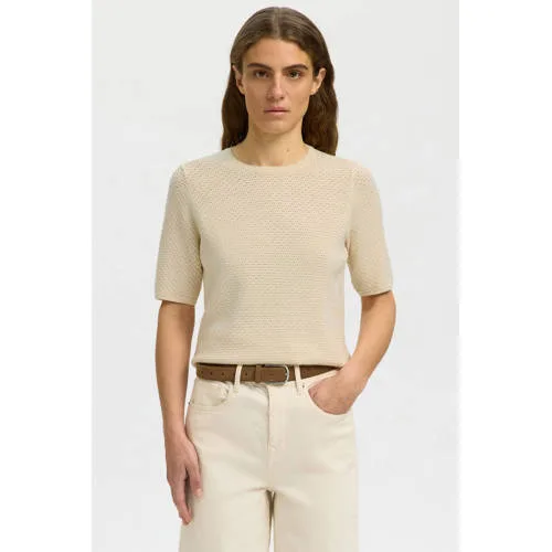 SELECTED FEMME top ecru gebreid