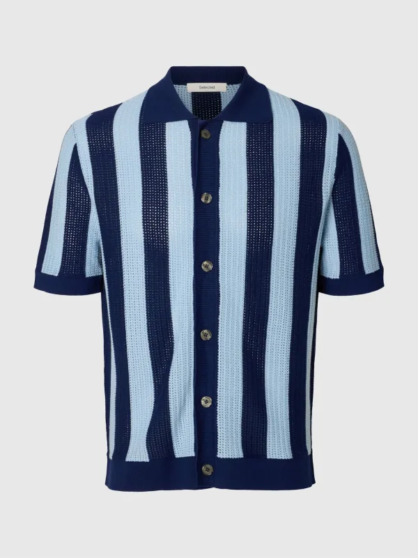 Design: Knop placket; Type sluiting: Knoopsluiting; Materiaal: Knitwear; Halstype: Polokraag; Motief: Gestreept; Details: Mesh; Extra's: Met textuur; Pasvorm: Losse pasvorm; Armlengte: Halve mouw; Lengte: Normale lengte
