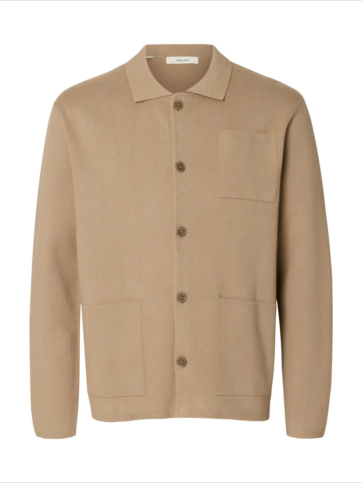 SELECTED Gebreid vest ‘SLHMike’ lichtbruin