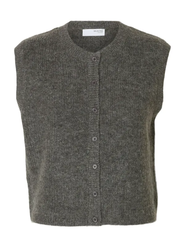 SELECTED Gebreide bodywarmer ‘SLFLULU’ grijs gemêleerd
