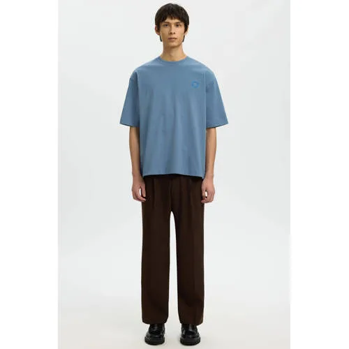 SELECTED HOMME oversized T-shirt gebreid lichtblauw