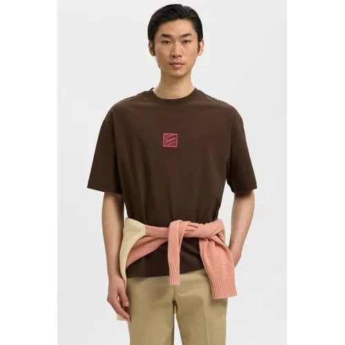 SELECTED HOMME relaxed T-shirt met backprint bruin Prijzen