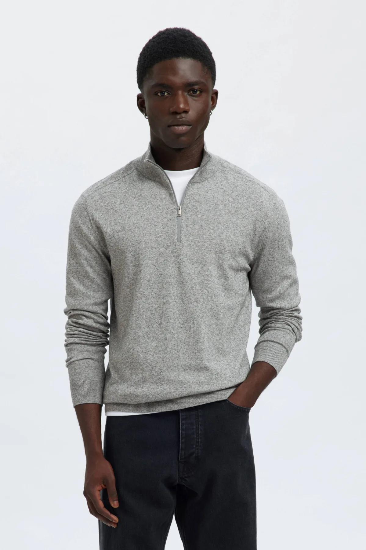 Deze SELECTED HOMME SLHBERG trui heeft een lange mouw en een opstaande kraag met korte rits. De trui is gemaakt van 100% katoen en fijn gebreid, waardoor je hem makkelijk combineert.