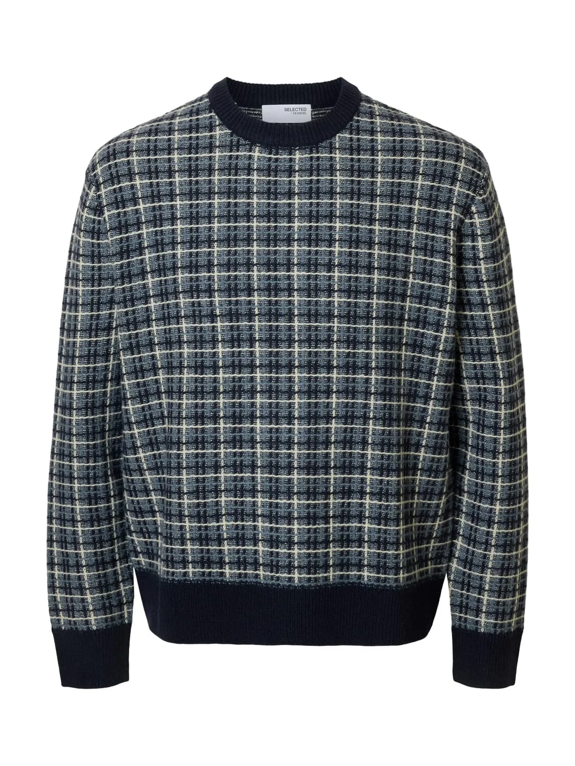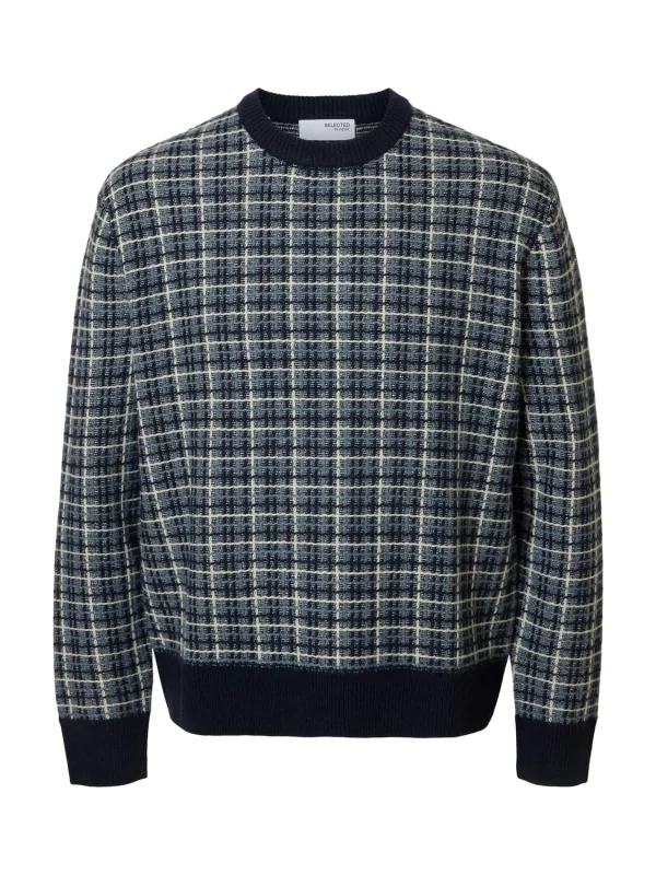 Gebreide herenpullover van SELECTED HOMME;Model 'Mikolas';Look: All-over motief;Pasvorm: Regular fit ;Motief: geruit;Kraagmodel: Hoge ronde hals;Mouwvorm: lange mouwen;Mouwboord: geribd;Rompzoom: geribd;Materiaalverwerking: Knitwear;Materiaal: Wolmix