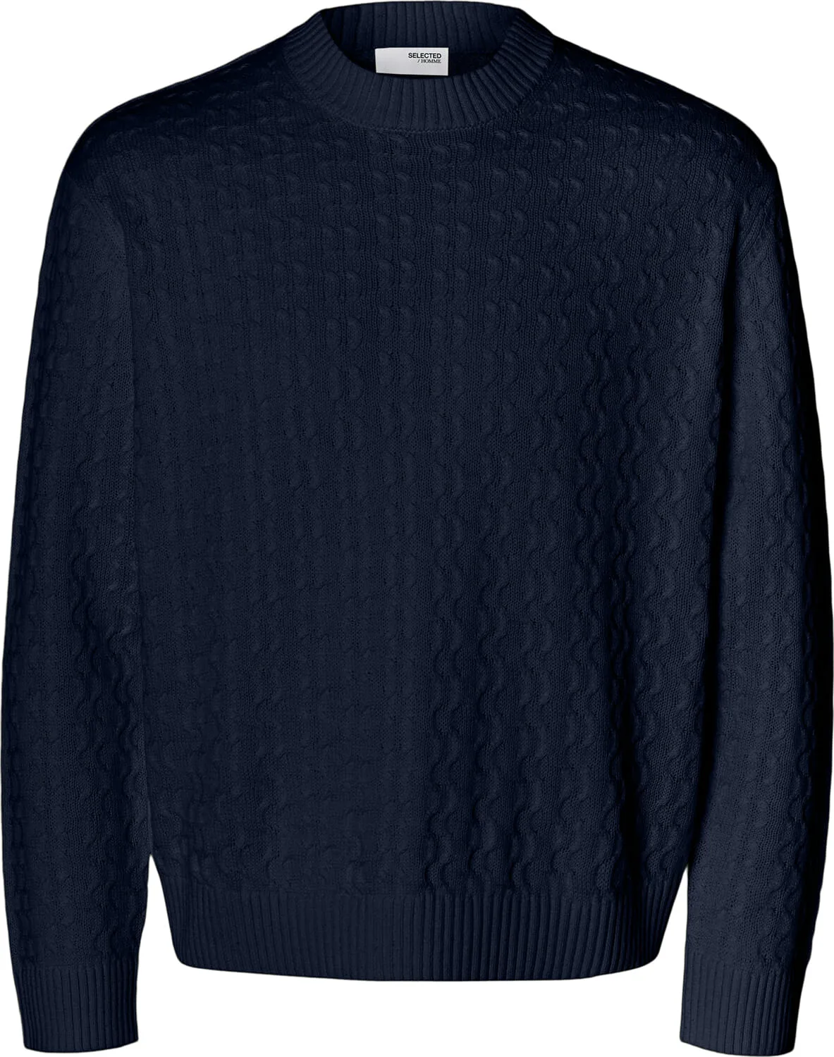 Gebreide herenpullover van SELECTED HOMME;Model 'Philip';Look: effen;Pasvorm: Regular fit ;Motief: structuur;Hals: ronde hals;Mouwvorm: lange mouwen;Mouwboord: geribd;Rompzoom: geribd;Materiaalverwerking: Knitwear;Materiaal: puur katoen