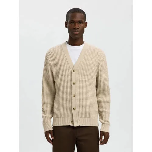 Gebreid jack voor heren van SELECTED HOMME;Model 'Tom';Look: effen, wafelstructuur ; Pasvorm: Regular fit;Sluiting: Knoopsluiting;Hals: ronde hals ;Mouwvorm: lange mouwen;Mouwboord: geribd ;Rompzoom: geribd;Materiaalverwerking: Grof tricot;Materiaal: puur katoen