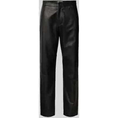 Herenbroek van SELECTED HOMME;Model 'Chance';Look: glanzend;Pasvorm: Wide leg;Applicatie: Label in reliëf;Details: Riemlussen;Sluiting: Knoop, schuifhaakje en blinde ritssluiting;Zakken: steekzakken opzij, gestileerde achterzak;Materiaalverwerking: Glad leer;Materiaal: echt lamsleer