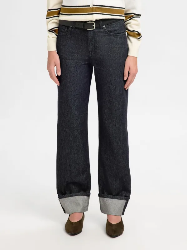 Design: 5-pocket-style; Type sluiting: Ritssluiting; Materiaal: Denim; Motief: Effen; Extra's: Riemlussen; Wassing: Rinsed/dark washed; Lengte: Lang/maxi; Pasvorm: Regular; Taillehoogte: Mid waist