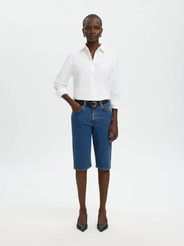Design: Gevoerde zoom/rand, Ritssluiting, 5-pocket-style; Type sluiting: Knoopsluiting; Materiaal: Denim; Motief: Effen; Extra's: Label patch/label flag, Op staal naden, Gewassen effect, Riemlussen; Wassing: Blauw denim; Lengte: Knielengte; Pasvorm: Slimfit; Taillehoogte: Mid waist
