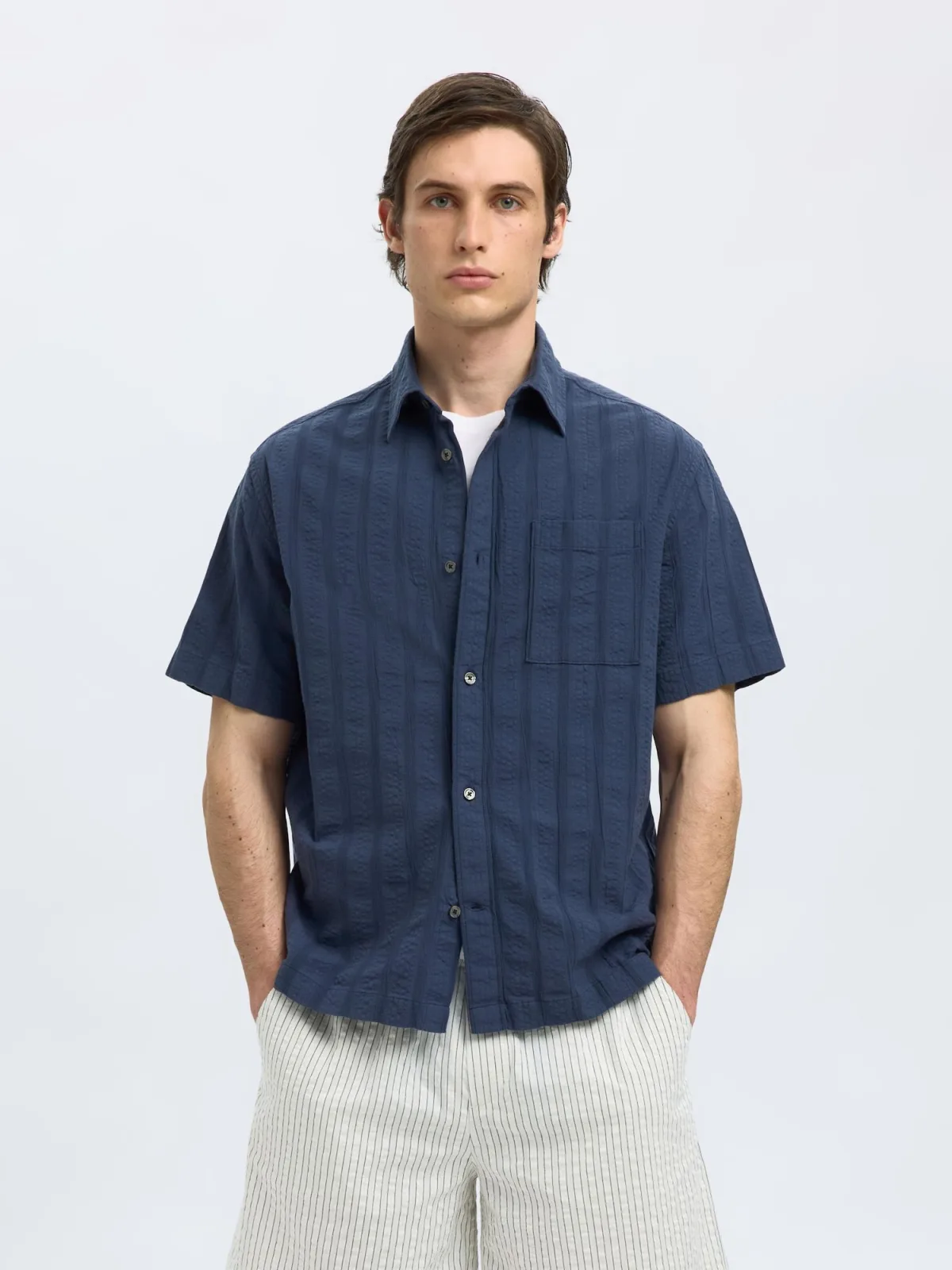 Design: Gevoerde zoom/rand, Borstzak; Type sluiting: Knoopsluiting; Materiaal: Katoen; Motief: Gestreept; Kraag: Kentkraag; Extra's: All-over patroon, Op staal naden; Pasvorm: Comfort fit; Armlengte: Kwartmouw