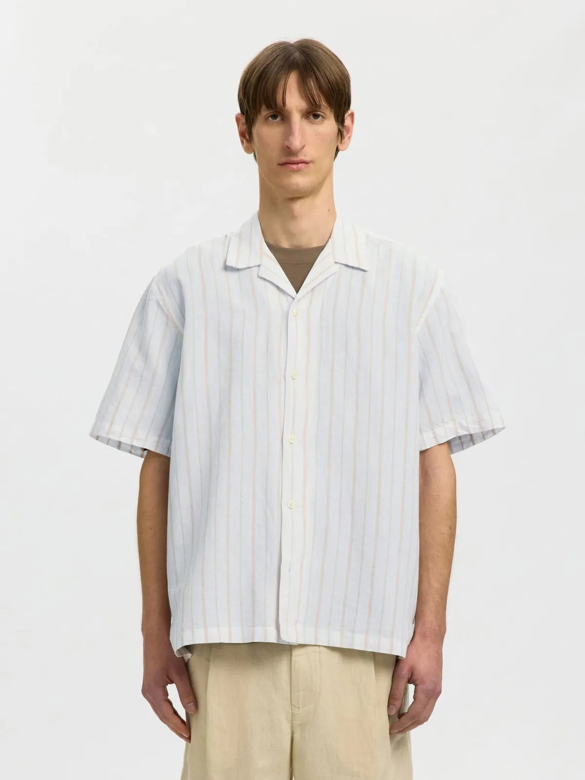 SELECTED Overhemd ‘SLHClay’ lichtbruin / wit