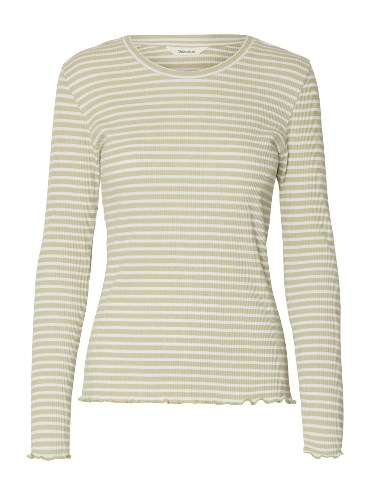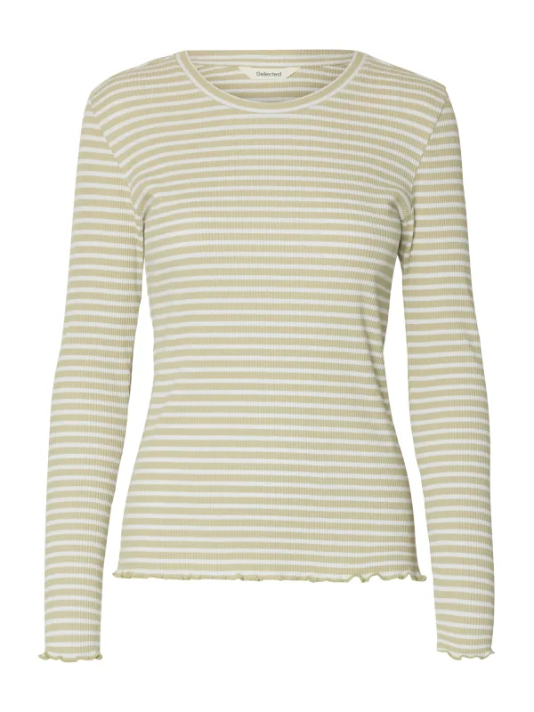 SELECTED Shirt ‘SLFELLEN’ pastelgroen / wit Prijzen