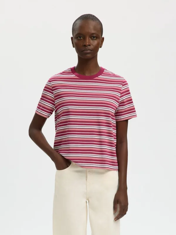 SELECTED Shirt ‘SLFEssential’ bruin / magenta / watermeloen rood / wit Prijzen