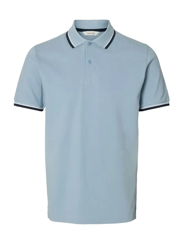 Specificaties: * Pasvorm: slim fit * Rits: twee knoopjes in de hals * Kleur: lichtblauw - donkerblauw - wit * Materiaal: 95% biologisch katoen - 5% elastaan