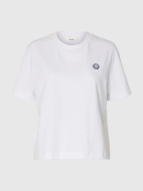 Dames T-shirt van Selected Femme;Model 'Ella';look: effen kleuren;pasvorm: boxy fit;Hals: ronde hals;Materiaal: puur katoen