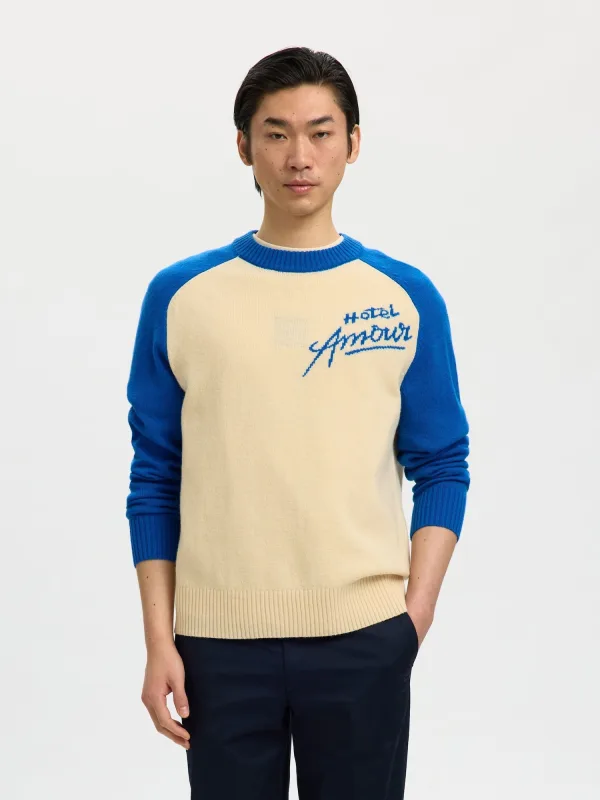 Specificaties: SELECTED Trui ‘Selected X Hotel Amour’ chamois / blauw