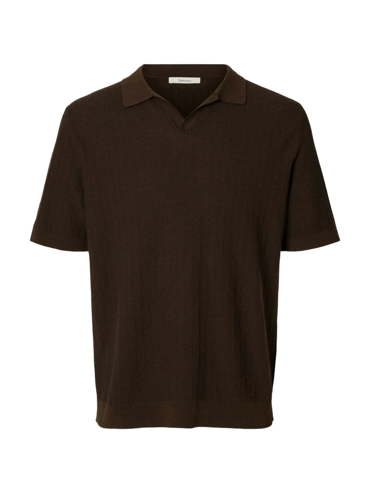 Voor een verzorgde, maar ontspannen look is deze herenpolo met korte mouw van SELECTED HOMME een fijne basic in je garderobe. De kleur 'Delicioso' is een warme bruintint die makkelijk te combineren is met jeans, chino's of shorts. Door de combinatie van katoen en linnen voelt de stof luchtig en comfortabel aan, ideaal voor dagen waarop je nét iets meer aangekleed wilt zijn dan met een T-shirt.Verfijnde details in een casual stijl Gemaakt van katoen en linnen voor een ademende en soepele stof Gebreide structuur met subtiel ingebreid patroon voor een rustige, maar verzorgde uitstraling Geribde boorden bij kraag en mouwuiteinden voor een mooie aansluiting Regular fit die recht langs het lichaam valt en veel bewegingsvrijheid biedt Effen kleur, daardoor eenvoudig te combineren met verschillende broeken en sneakers Kortemouwmodel met klassieke polokraag zonder borstzak voor een strak geheel Wasbaar op 30 graden, niet in de droogtrommel drogen en warm strijkbaar op twee puntenVeelzijdig voor werk en vrije tijdDeze polo past goed op een nette broek voor kantoor of een etentje, maar staat ook relaxed op een korte broek in het weekend. De structuur in de stof geeft net wat extra karakter aan een eenvoudige outfit.SELECTED HOMME als moderne klassiekerSELECTED HOMME staat voor moderne, tijdloze herenmode met aandacht voor pasvorm en kwaliteit. De collectie combineert cleane lijnen met doordachte details, zodat je elk seizoen kunt bouwen op betrouwbare basics in je kast.Een comfortabele polo die je keer op keer met vertrouwen uit de kast pakt.