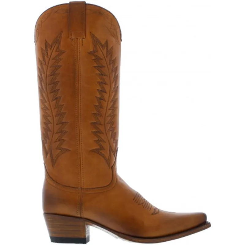 Sendra 17605 Dames Western Laars Een absolute musthave, dat is deze laars van Sendra! De schoen is volledig voorzien van leer en is aan de buitenzijde ook voorzien van hippe stiksels in vlammenpatroon. Wat zeker niet mag missen bij een westernboot zijn de afgeronde schachten, treklussen en de midi blokhak. Verder heeft de laars een leren zool met een glad profiel. Dit laarsje is leuk te combineren met een stoere jeans of jurkje! Wil je deze hippe laarzen van Sendra snel in huis hebben? Bestel dan online of kom naar een van onze winkels. Eigenschappen * Hakhoogte: 5 cm * Schachthoogte: 30 cm * Geen uitneembaar voetbed * Goodyear-methode * Tip: Bestel je eigen maat!
