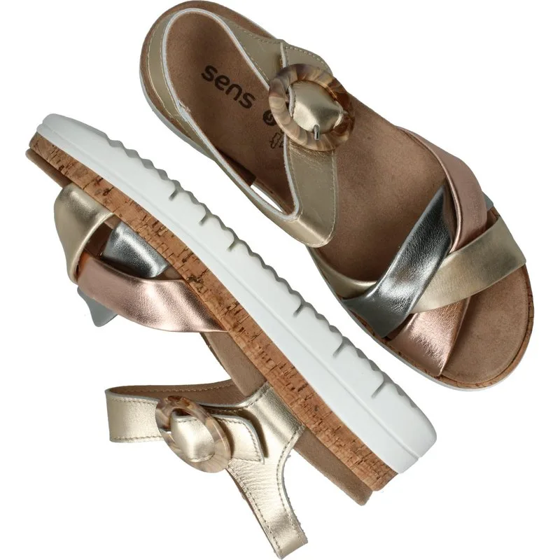 Deze Sens Sandalen zijn voor Dames in de kleur Goud. De schoenen zijn gemaakt van het materiaal Metallic en de voering is gemaakt van . De voetbreedte van de schoenen is H - breed.