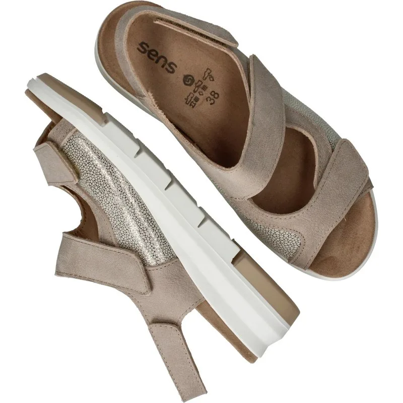 Deze Sens Sandalen zijn voor Dames in de kleur Beige. De schoenen zijn gemaakt van het materiaal Nubuck;Textiel en de voering is gemaakt van . De voetbreedte van de schoenen is H - breed.