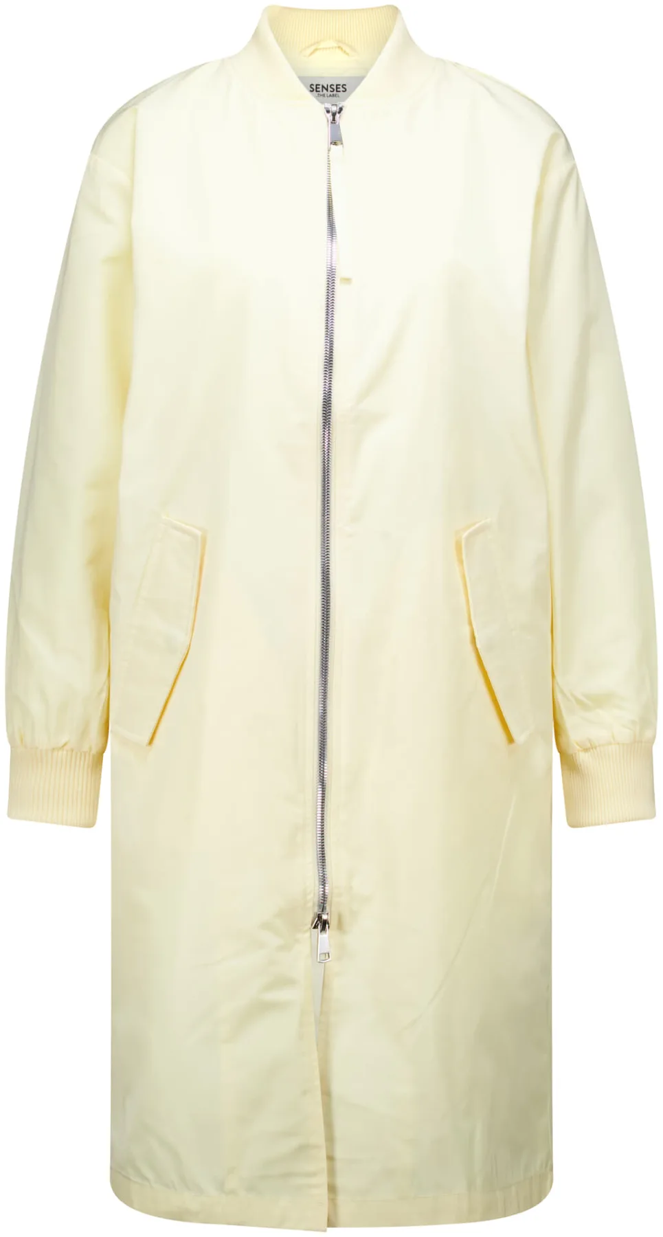 Gewatteerde jas van Senses The Label in effen, lichtgele tint, met opstaande kraag en rits. Regular pasvorm met lange mouwen en ribgebreide mouwboorden. Praktische voorzakken aan de voorzijde en een minimalistische, casual uitstraling, ideaal voor dagelijks gebruik.
