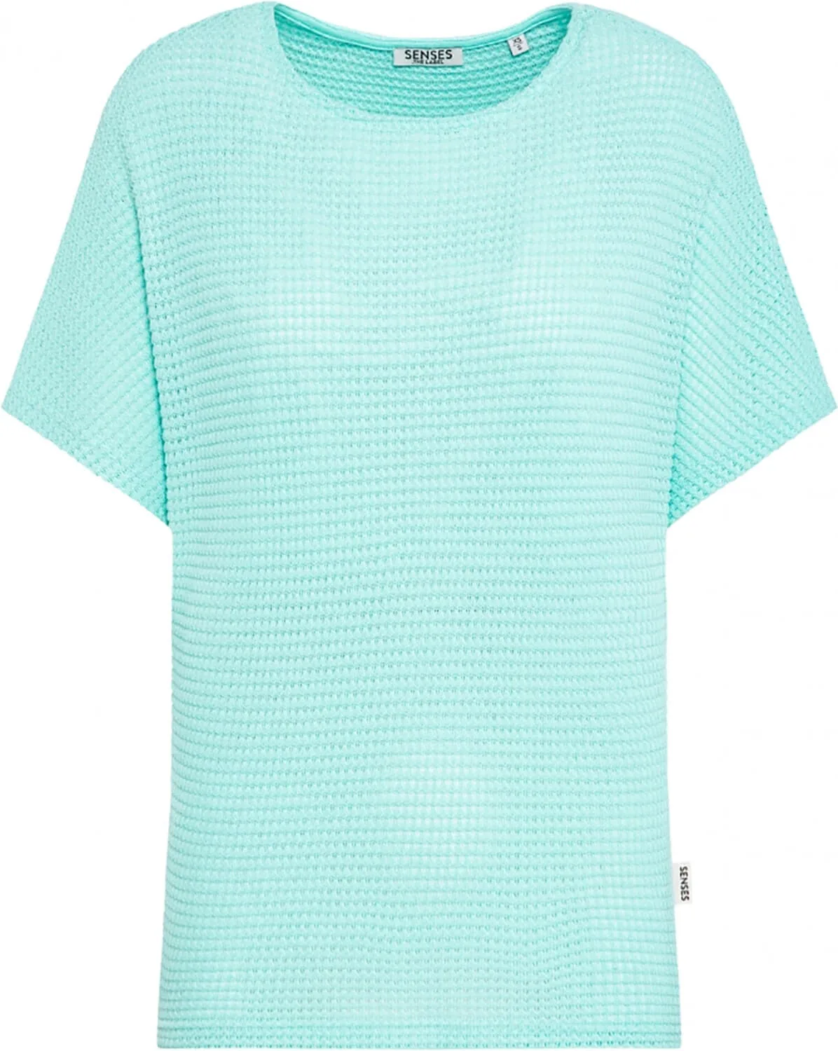 Top van Senses the Label met ronde hals, korte mouw en een effen dessin. De wafelstructuur geeft een subtiel reliëf en een luchtig gevoel. De rechte, losvallende pasvorm draagt comfortabel. Combineer met een jeans voor casual, of draag in een rok voor een rustige uitstraling.