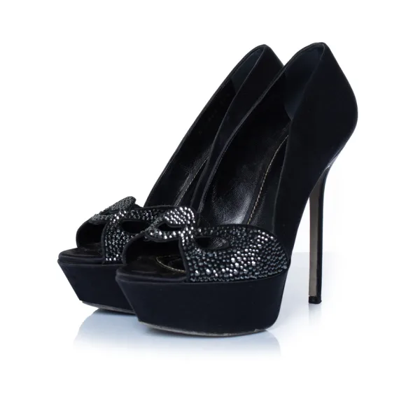 Sergio Rossi zwarte satijnen pumps met strass