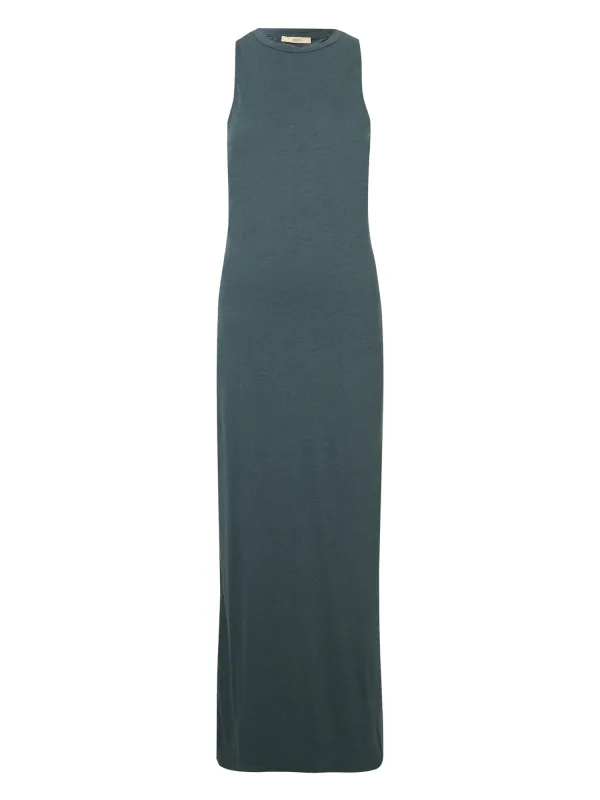 Design: Gevoerde zoom/rand, Rechte zoom; Materiaal: Lyocell; Halstype: Ronde hals; Motief: Mélange; Soort bandjes: Racerback; Details: Gedrapeerd; Extra's: Op staal naden, Voelt zacht aan; Lengte: 7/8 lengte; Snit: Getailleerd; Pasvorm: Slanke pasvorm; Armlengte: Mouwloos