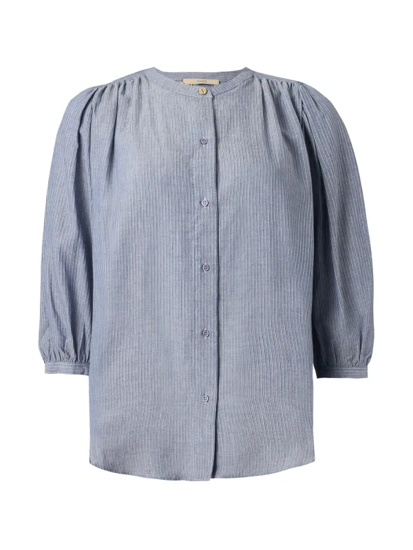 Blouse type: Klassieke blouse; Design: Gevoerde zoom/rand, Knop placket, Pofmouwen, Ronde zoom; Type sluiting: Knoopsluiting; Materiaal: Viscose; Motief: Gestreept; Kraag: Zonder kraag; Details: Gedrapeerd; Extra's: All-over patroon, Koele grip; Pasvorm: Normale pasvorm; Armlengte: Driekwart mouw; Lengte: Normale lengte