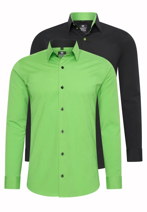 Rusty Neal heren overhemd set van 2 Pasvorm: Slim Fit Materiaal shirt: 60% katoen, 37% polyester, 3% elastaan Gewicht: 500 g Land van herkomst: Turkije Kraagvorm: Kent kraag TEVREDENHEIDSGARANTIE: U kunt bij ons zonder risico kopen, wij accepteren retourzendingen zonder opgaaf van reden en storten uw geld binnen de kortst mogelijke termijn terug. Onze bedrijfsfilosofie is nog steeds: "De klant is koning". Ons doel is om te allen tijde de best mogelijke service te bieden, met het hoofdkantoor in Duitsland. PRODUCTIE: Als oprichter en fabrikant ontwerpen en produceren wij onze producten autonoom van A tot Z als familiebedrijf. Hierdoor kunnen wij kwaliteit en een optimale prijs-kwaliteitverhouding garanderen. Gefabriceerd onder eerlijke arbeidsomstandigheden met hoogwaardige materialen die zorgvuldig zijn verwerkt (geen chemische geur). Tijdloos design uit het land van herkomst: Turkije PASVORM: Dit shirt is gemaakt van een hoogwaardige en soepele katoenmix en staat garant voor een absoluut comfortabel gevoel met een feelgoodfactor. Ons model is 1,85 m lang, weegt ruim 80 kg en draagt maat M (medium). Aangepast aan de Europese markt, bieden wij dit shirt aan in de volgende pasvorm: Slim Fit GELEGENHEID: Of het nu lente/zomer of herfst/winter is, dit shirt is altijd comfortabel om te dragen en is een allrounder. Dankzij de hoogwaardige materialen en afwerking kriebelt het niet. Het tijdloze en toch moderne design garandeert een stijlvolle verschijning, zowel op kantoor of tijdens zakelijke bijeenkomsten als casual in de middag of als een geweldig accent op feesten of andere evenementen. MACHINEWASBAAR: Dankzij de hoogwaardige verwerking van de materialen is er geen sprake van kleurverlies na het wassen en is krimpen van het shirt geen probleem meer! Kwaliteit die de tand des tijds doorstaat, zelfs na talloze wasbeurten!