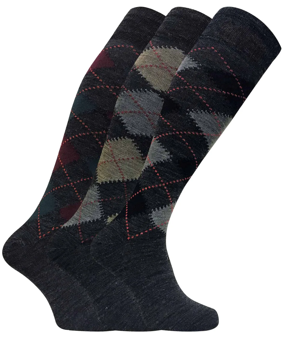 Set van 3 Argyle kniekousen van lamswol voor heren – Grijs Prijzen