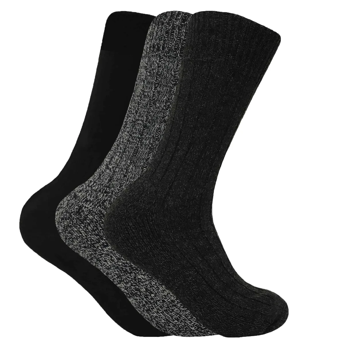 Set van 3 dikke wandelsokken van warme wolmix voor heren – Grijs