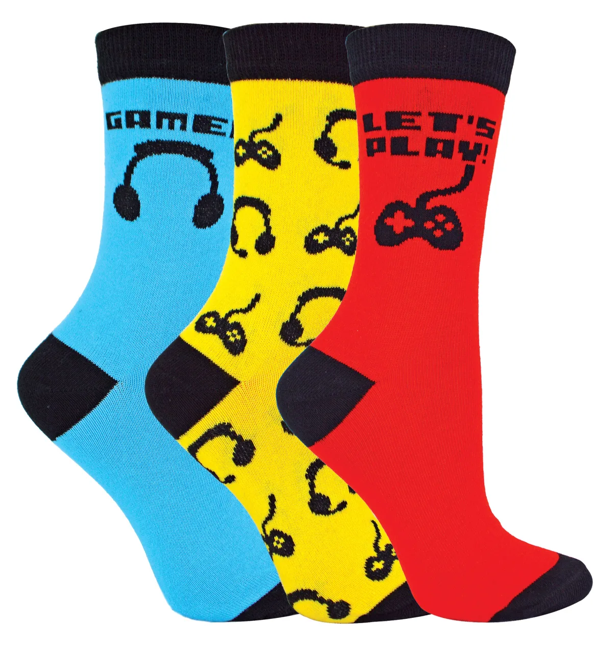 Set van 3 nieuwe game-sokken voor kinderen – Rood / Blauw / Geel