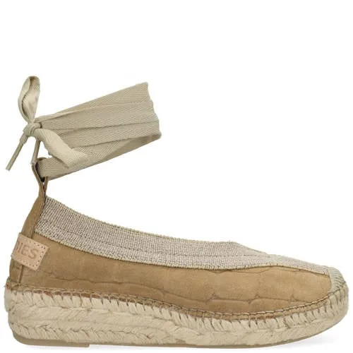 Shabbies Amsterdam leren espadrilles met crocoprint zand