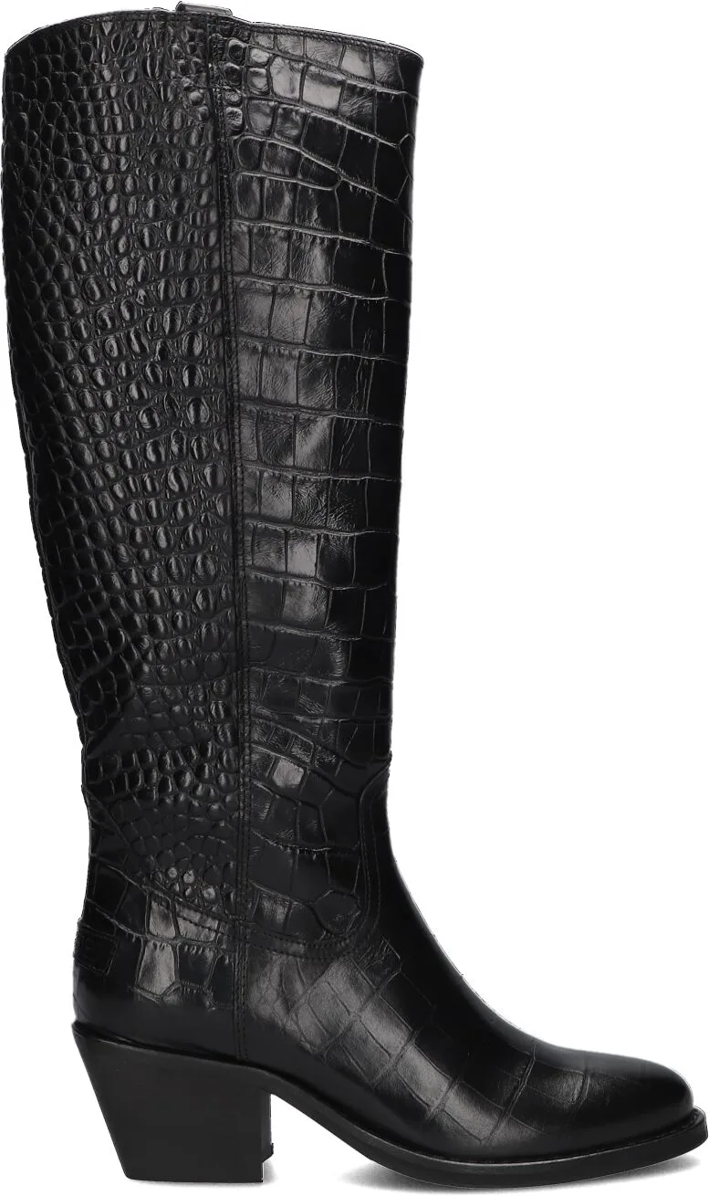 Het streven van het Amsterdamse merk SHABBIES is dat jij je met elke stap die je zet zelfverzekerder voelt. Dat doen ze door het gebruik van fijne materialen van hoge kwaliteit en een mooi design met een vrouwelijke touch. Deze lange laars JUUL MID BOOT is gemaakt van soepel leer met een rechte schacht die soepel om het been valt. De zwarte laars heeft een mooie krokodillenprint en is afgewerkt met een mooie glans. Op de hiel is een patch met reliëf merkopdruk te vinden en boven aan de schacht is een aantreklus bevestigt. Je trekt dit model gemakkelijk aan door de halve ritssluiting aan de binnenzijde. De voering is gemaakt van leer met een comfortabel, vast voetbed. De hakhoogte is 6 centimeter en de schacht is 40 centimeter hoog, gemeten bij maat 38. Show deze basic lange laars met stoere uitstraling onder iedere favoriete outfit!