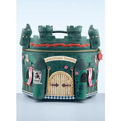 ''Time for a dramatic entrance!'' Het is bijna onmogelijk te omschrijven hoe mooi deze handgemaakte tas is! Dit middelgrote model is uitgevoerd in (turquoise) blauw vegan leder dat het beroemde tragische toneelstuk van Hamlet laat zien met katten in de hoofdrol. Door al die verschillende kleuren, accenten en het delicate stikwerk is het eigenlijk een gedetailleerd kunstwerk waarbij je steeds iets nieuws ontdekt en als kers op de taart heeft ze 2 afneembare hengsels waardoor je haar niet alleen als handtas kunt dragen, maar ook crossbody en zelfs als rugzak! ''To buy, or not to buy: That is the question.'' ;-) * Limited edition! * Goudkleurige details en ritssluiting * Groot middenvak * Twee extra vakjes, één daarvan met rits * Een extra vakje met ritssluiting achterzijde * Gevoerd met een gedecoreerd stofje met talloze Londense attracties * Afneembare en verstelbare hengsels * Kan crossbody én als rugzak gedragen worden * Beschermpootjes onderzijde * Genoeg ruimte voor je portemonnee, je telefoon, sleutels en make-up spulletjes * Vegan approved!