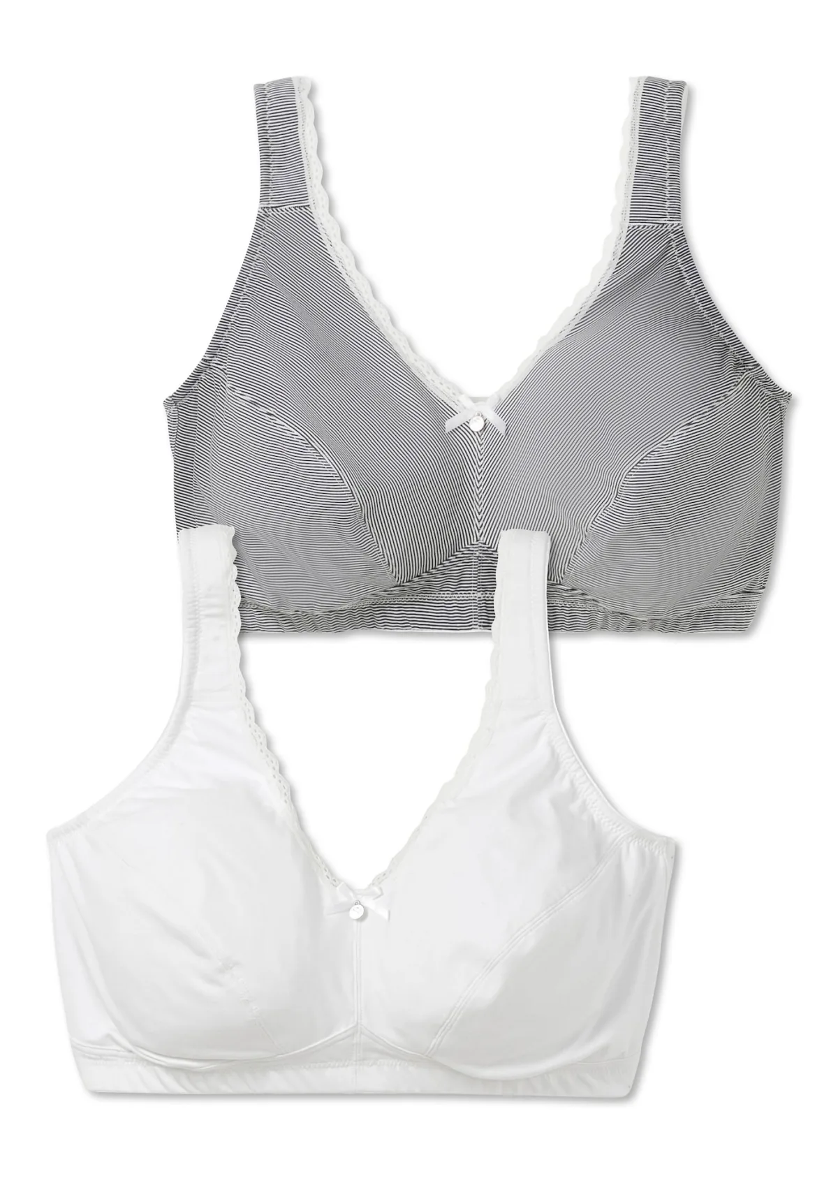 Cup soorten: Soft cup bh; Beugel: Zonder beugel; Design: Zoom/rand met boord, Verstelbare riemen, Haaksluiting; Materiaal: Katoen; Motief: Gestreept; Extra's: All-over patroon, Voelt zacht aan; Aantal: 2 Pack