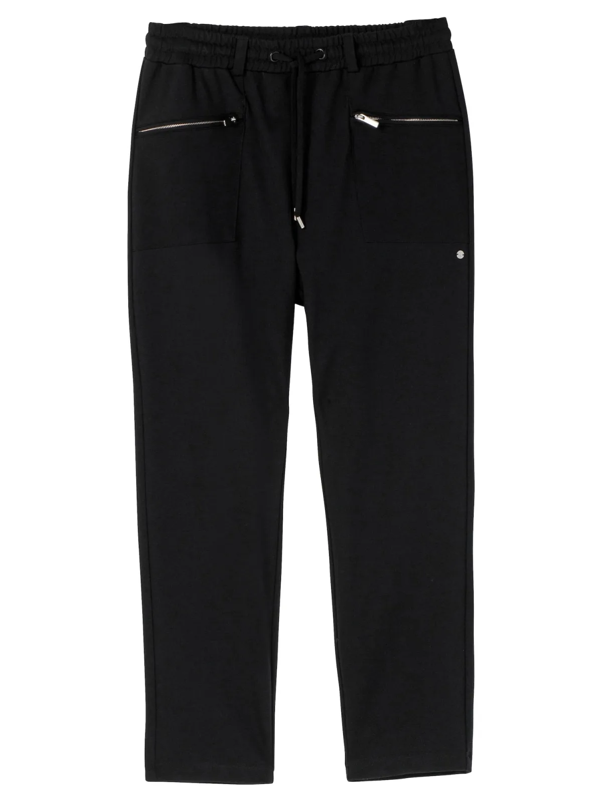 Design: Elastische taille/zoom, Met band/snoer, Ritszakken aan de zijkant; Type sluiting: Knoopsluiting; Materiaal: Viscose; Motief: Effen; Extra's: Op staal naden, Riemlussen; Lengte: 7/8 lengte; Pasvorm: Slimfit; Taillehoogte: Mid waist