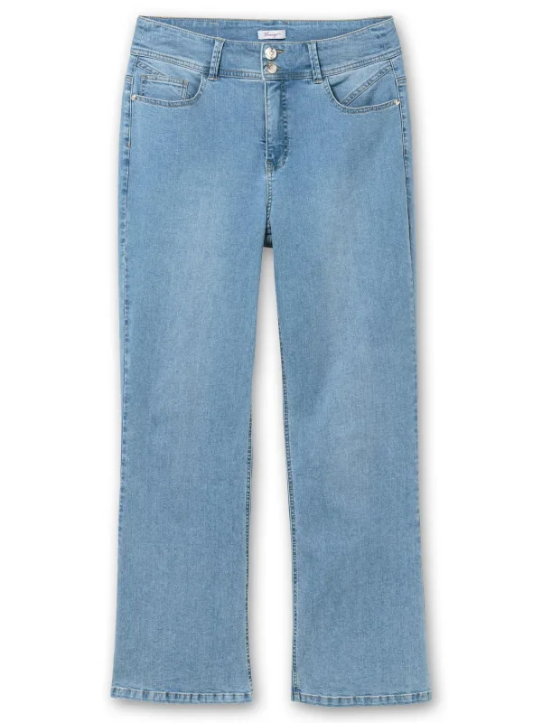 Design: Broekzoom met rits, Ritssluiting, 5-pocket-style; Type sluiting: Knoopsluiting; Materiaal: Denim; Motief: Effen; Extra's: Label plaatje, Contrasterende naden, Label patch/label flag, Riemlussen; Wassing: Light washed; Lengte: Lang/maxi; Pasvorm: Bootcut; Taillehoogte: High waist