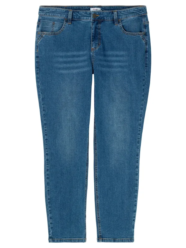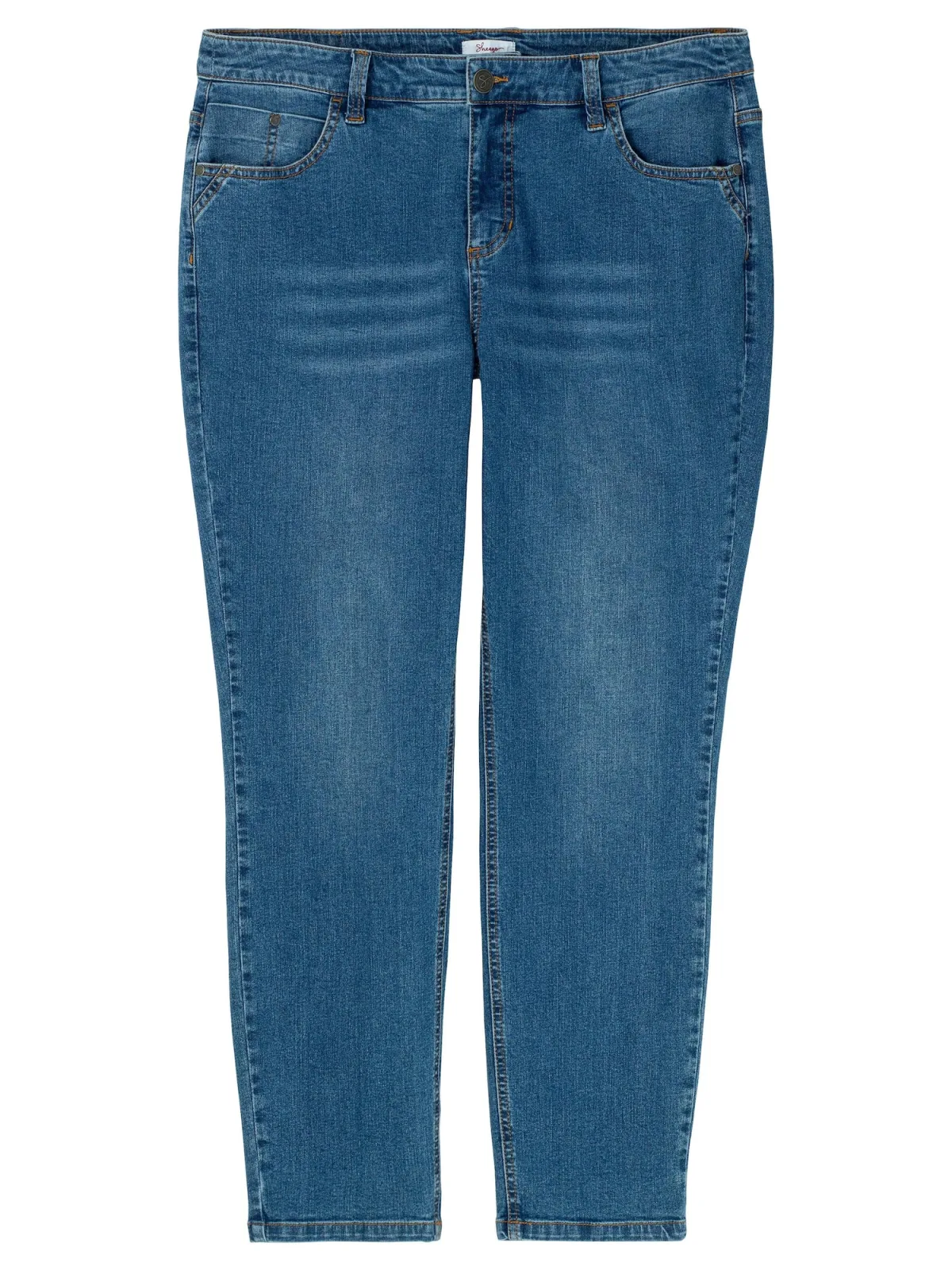 Design: 5-pocket-style; Type sluiting: Ritssluiting; Materiaal: Denim; Motief: Effen; Extra's: Contrasterende naden; Wassing: Blauw denim; Lengte: Lang/maxi; Pasvorm: Slimfit; Taillehoogte: Mid waist