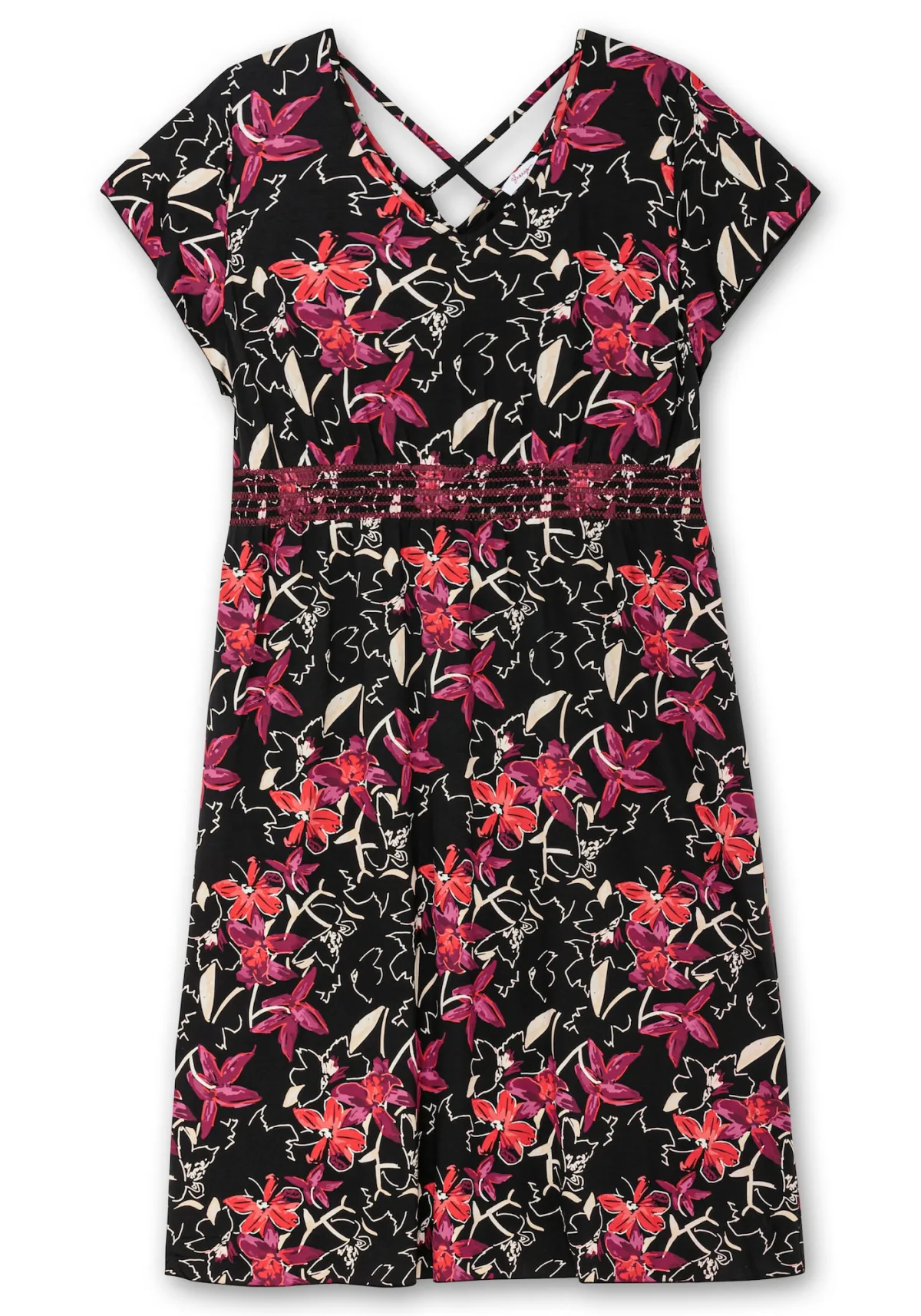 Design: Gevoerde zoom/rand; Materiaal: Viscose; Halstype: V-hals; Motief: Bloemenprint; Extra's: All-over patroon; Lengte: 3/4 lengte; Snit: Recht; Pasvorm: Normale pasvorm; Armlengte: Kwartmouw