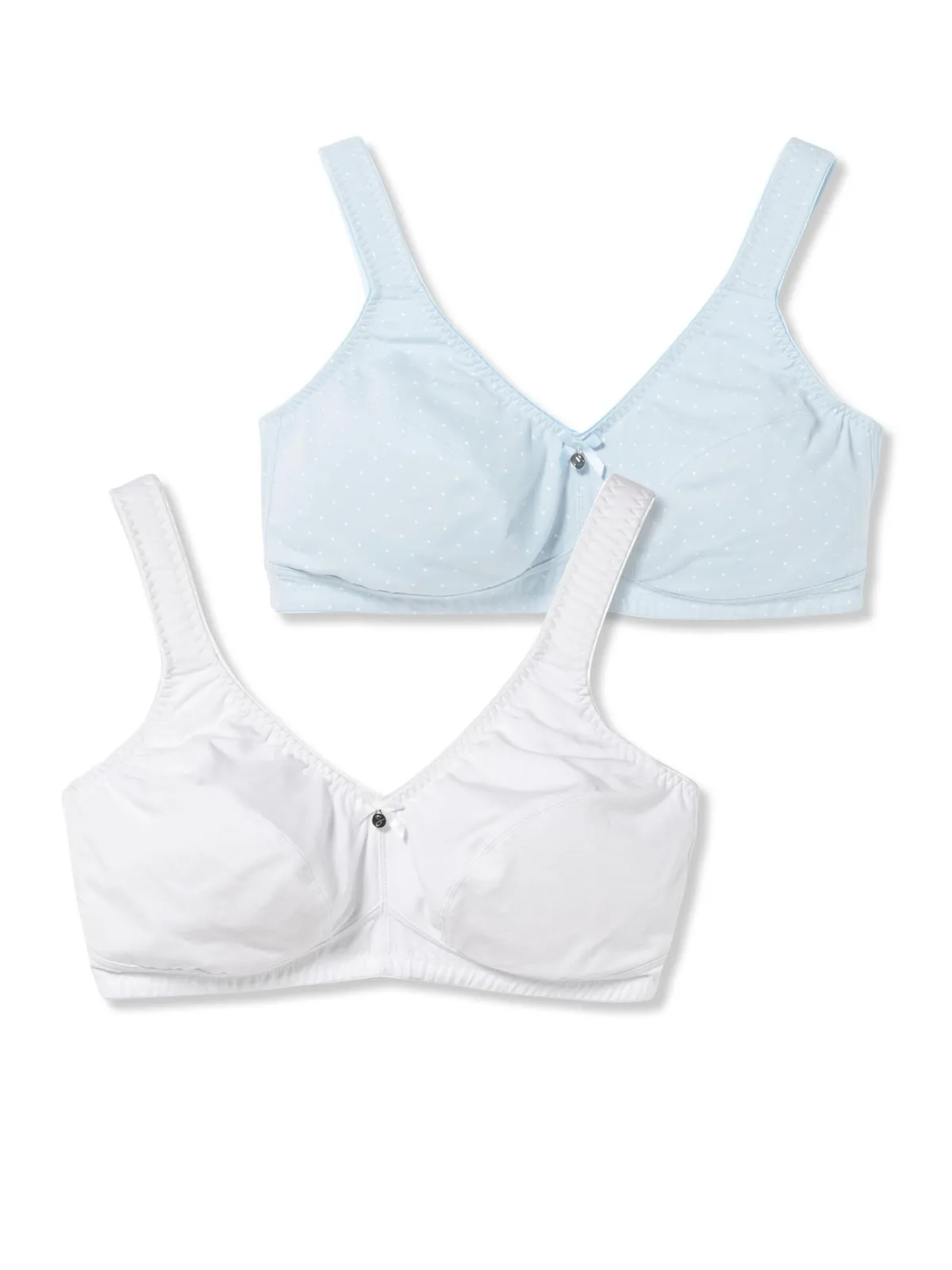 Cup soorten: Soft cup bh; Soort bandjes: Normale bandjes; Bh/bikini type: Minimizer; Beugel: Zonder beugel; Type sluiting: Haakjes; Materiaal: Jersey; Motief: Gestippeld; Extra's: Label plaatje, Verstelbare bandjes, Voelt zacht aan; Aantal: 2 Pack