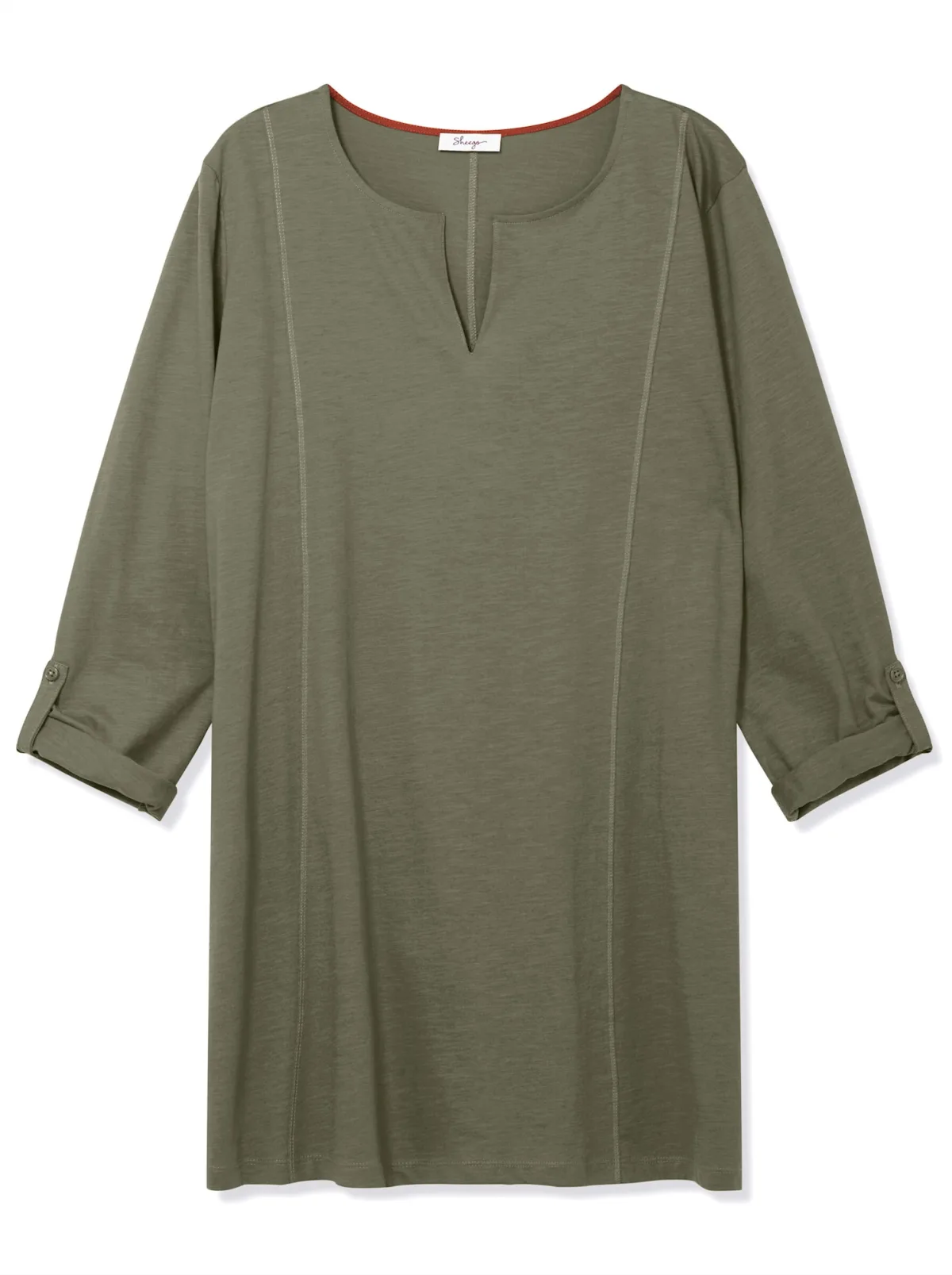 Design: A-lijn, Mouw revers, Deelnaden, Siernaad; Materiaal: Jersey; Halstype: Uitgesneden hals; Motief: Effen; Extra's: Op staal naden, Voelt zacht aan; Pasvorm: Losse pasvorm; Armlengte: Lange mouw; Lengte: Lange pasvorm