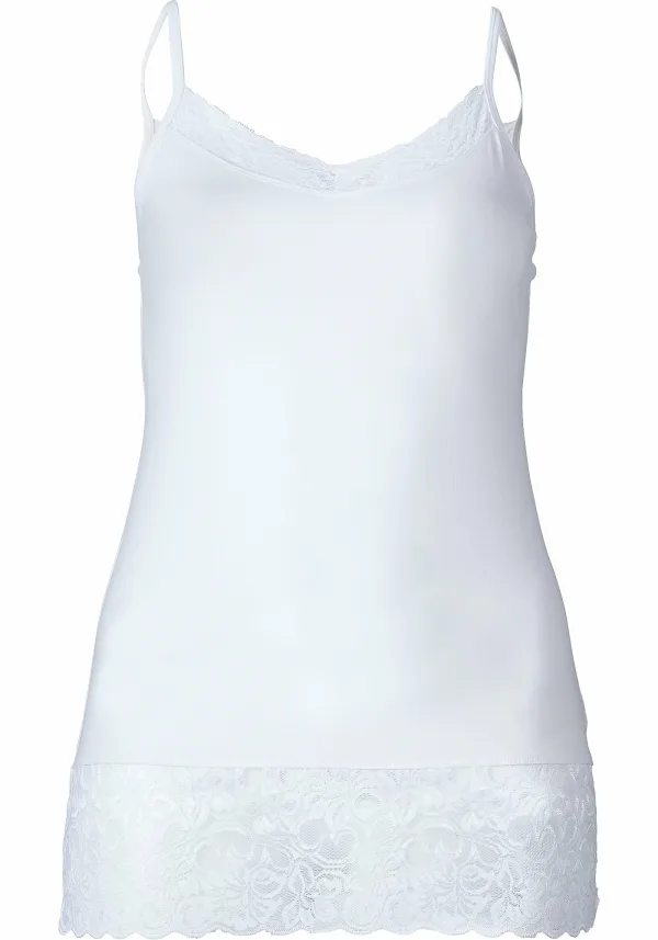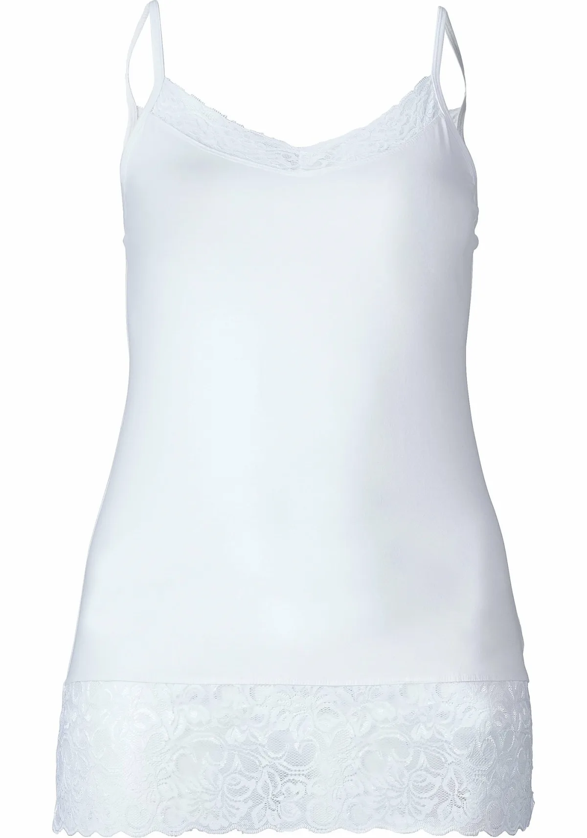 Design: Geschulpte zoom; Materiaal: Jersey; Halstype: V-hals; Motief: Effen; Soort bandjes: Spaghettibandjes; Details: Kant; Extra's: Voelt zacht aan; Pasvorm: Aansluitende pasvorm; Armlengte: Mouwloos; Lengte: Lange pasvorm